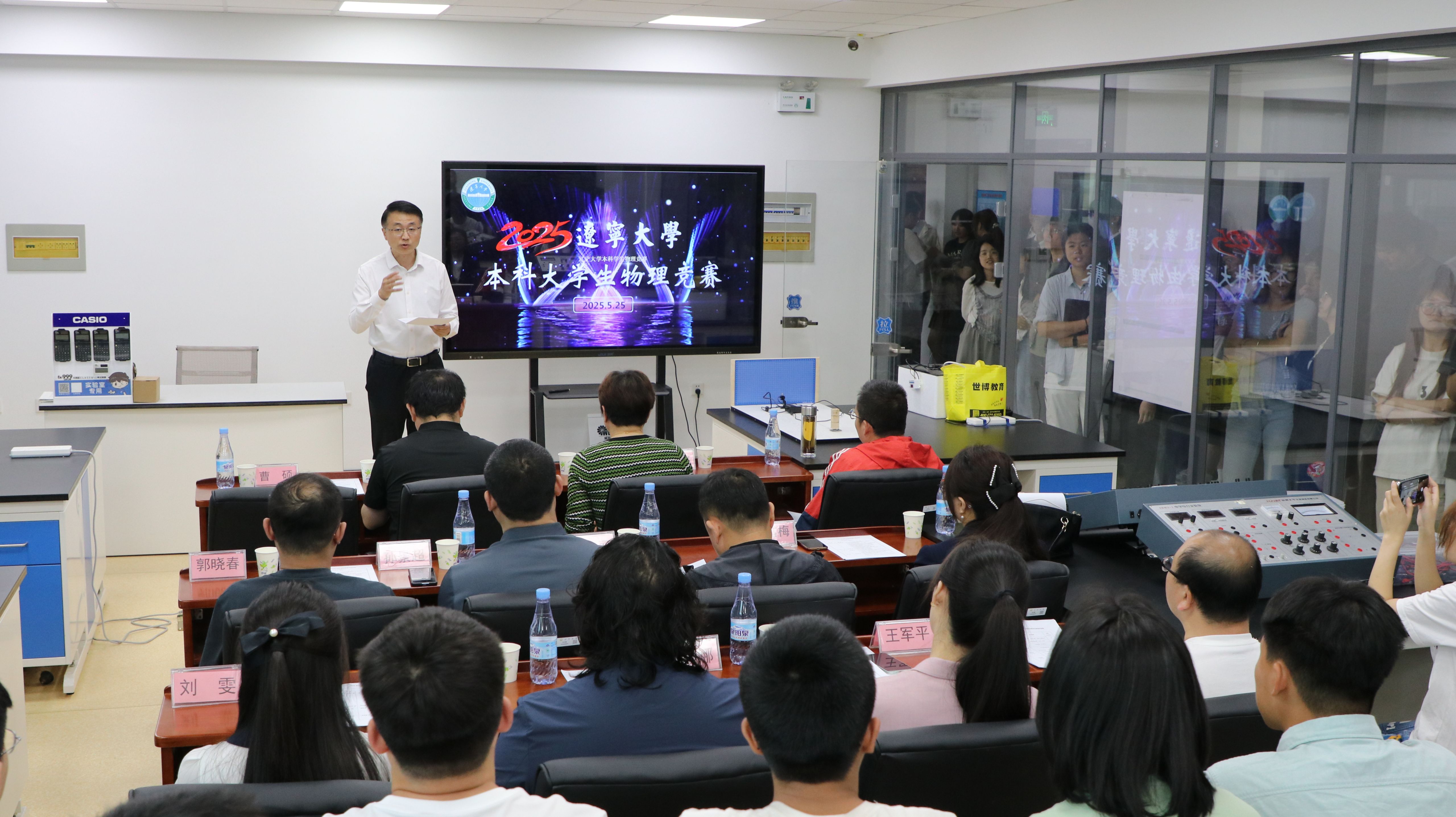 5月25日,2025年辽宁大学本科大学生物理竞赛暨推荐优秀代表队参加辽宁省普通高等学校本科大学生物理竞赛会议在物理学院成功举办。本次物理竞赛来自校内各个院系130个代表队、近400名各专业大学生报名参加现场答辩与实验演示,竞赛于理贤楼基础物理实验室同步进行。此次物理竞赛参赛人数是我校历年来最大规模,各专业大学生报名踊跃,准备充分,现场答辩气氛热烈。辽宁大学创新创业学院院长朱春玉、物理学院副院长刘世兴、辽宁大学基础物理系主任(基础与近代物理实验室主任)曹硕、以及来自沈阳工业大学物理实验中心主任国安邦、沈阳航空航天大学物理实验中心主任孙景超、沈阳理工大学物理教学中心主任齐东丽、中国刑事警察学院物理实验中心主任郭晓春等校内外12名专家评审竞赛。